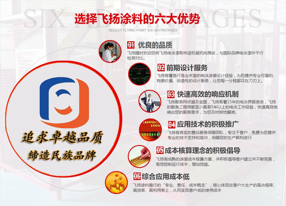 飛揚涂料創立于1999年,是專注于陰極環氧電泳漆研發、生產、銷售和服務的電泳漆生產廠家,公司已通過IATF16949國際質量管理體系認證。“提供適合客戶的產品,助力客戶提高產品品質、降低運行成本、增加效益”是飛揚立足業界的根本!...